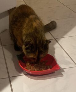 Zu Hause zeigte sich dann allerdings ein möglicher Grund, warum Milka den vertrauten Garten verlassen haben könnte. Sie hatte ein inzwischen relativ stark entzündete Verletzung am Schwanz, der auf eine Auseinandersetzung mit einer anderen Katze deutet. Nun bekommt sie Antibiotika und liebevolle Pflege und wird sicherlich -dann allerdings mit einem richtigen Tracker ausgestattet- bald wieder auf Tour gehen.
